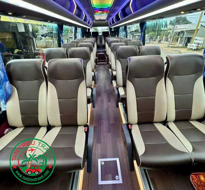 - Dàn xe 29 chỗ đời mới, sạch sẽ, máy lạnh mát rượi, ghế bật êm ái giúp hành trình dài không còn mệt mỏi.