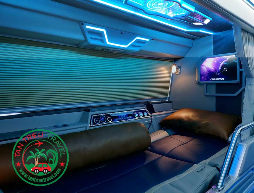 Là dòng xe limousine cao cấp là phiên bảng cao cấp từ xe giường nằm phổ thông được chia thành 3 dãy với 2 tầng được thiết kế rộng rãi có vách ngăn che kín đáo, nội thất bọc da êm ái, tiện nghi đầy đủ như TV, cổng sạc, đèn đọc sách, wifi, khăn lạnh, nước uống không gian thoải mái như 1 phòng du động, phù hợp với những chuyến đi đường dài.