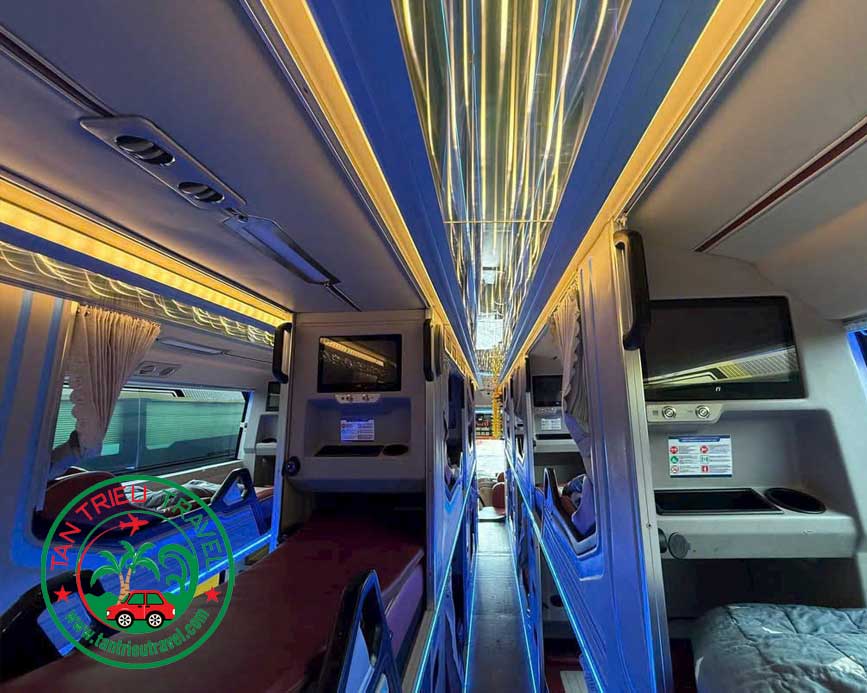 Đây là giường nằm phổ thông được nhiều du khách lựa chọn với chi phí tiết kiệm, giường rộng rải, có thể ngã lưng sau, được thiết kế với 2 tầng 3 dãy ghế, mỗi giường được trang bị đầy đủ thiết bị tiện nghi đầy đủ tại mỗi giường, có thiết bị giải trí, không gian rộng có lối đi giữa các đường. Phù hợp với những đoàn khách du lịch công ty, đoàn thể, nhóm bạn có chi phí thấp.