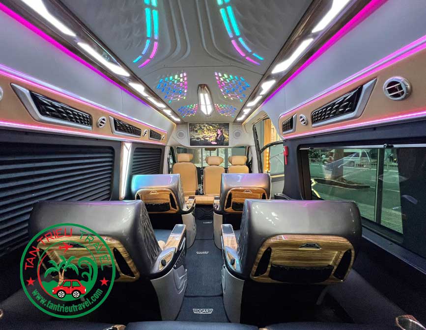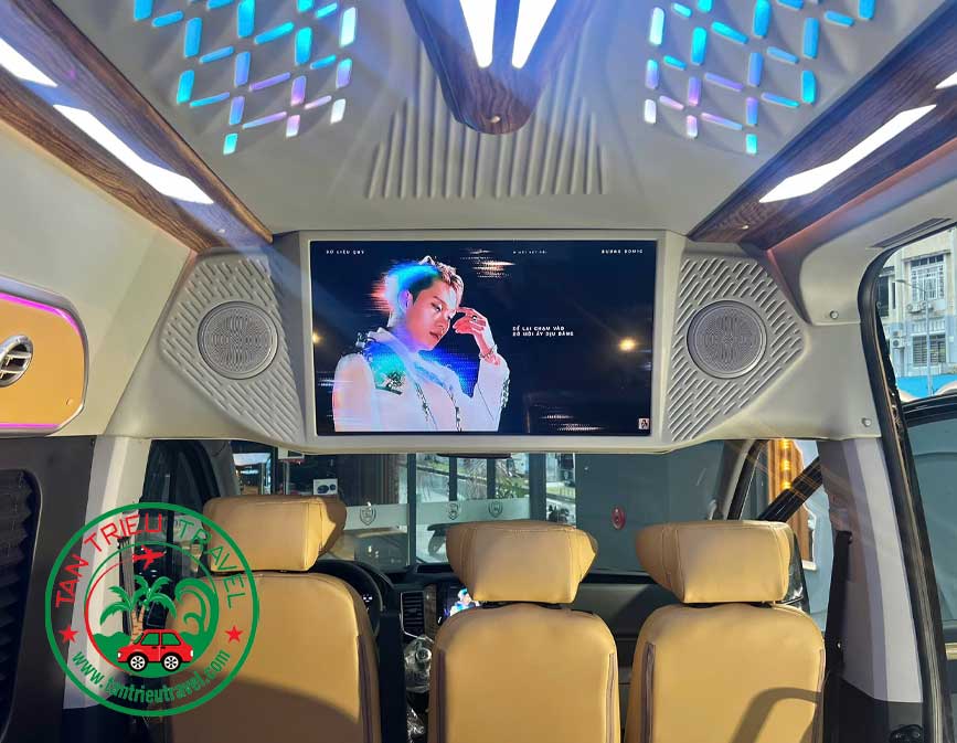 Đây là dòng xe cao cấp nhất trong những dòng xe mà Tân Triều đang cung cấp dịch vụ cho thuê xe. Limousine có ưu điểm lớn đó là đem lại sự thoải mái, tiện lợi cho người sử dụng dịch vụ trong xuyên suốt chuyến đi của mình. Xe được trang bị đầy đủ những tiện ích như ghế massage, máy lạnh, loa, tivi để phục vụ những nhu cầu giải trí cho khách hàng. Sự tiện nghi cũng là điều mà khách hàng luôn đánh giá cao khi sử dụng dịch vụ thuê xe limousine của Tân Triều Travel. Ghế ngồi rộng rãi, được tích hợp Massage, trần cao thoáng tạo không khí thoáng đãng trong khoang xe.
