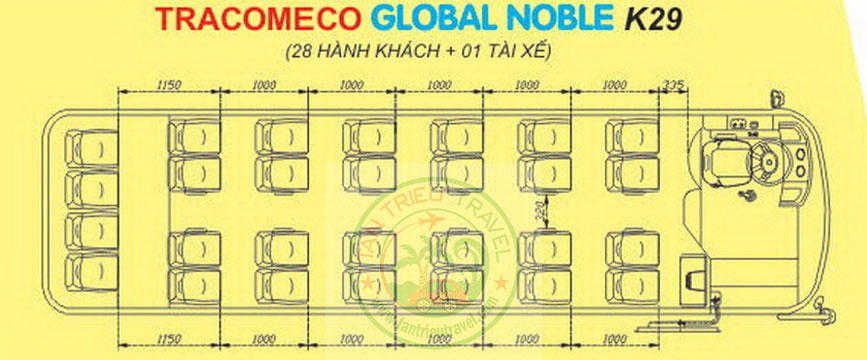 Sơ đồ dòng xe 34 ghế Thaco (dòng này thì Tân Triều Travel không có đầu tư)